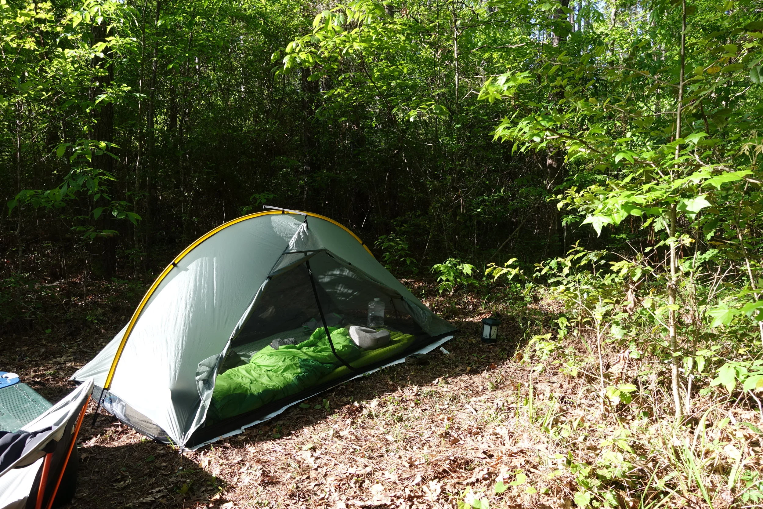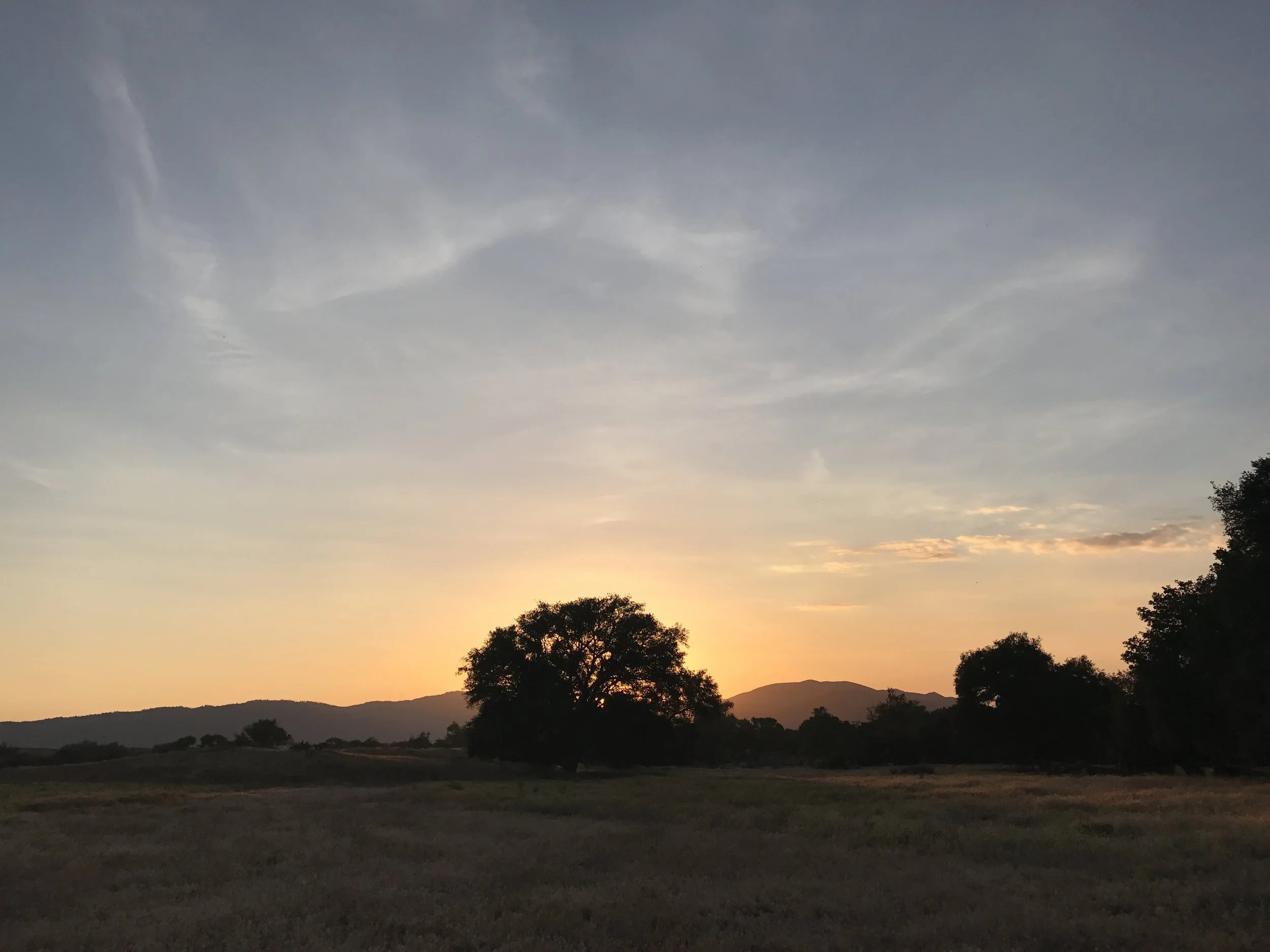 My shelter under a solitary oak in a pasture. The field was thick with volcanic rock and cow patties.